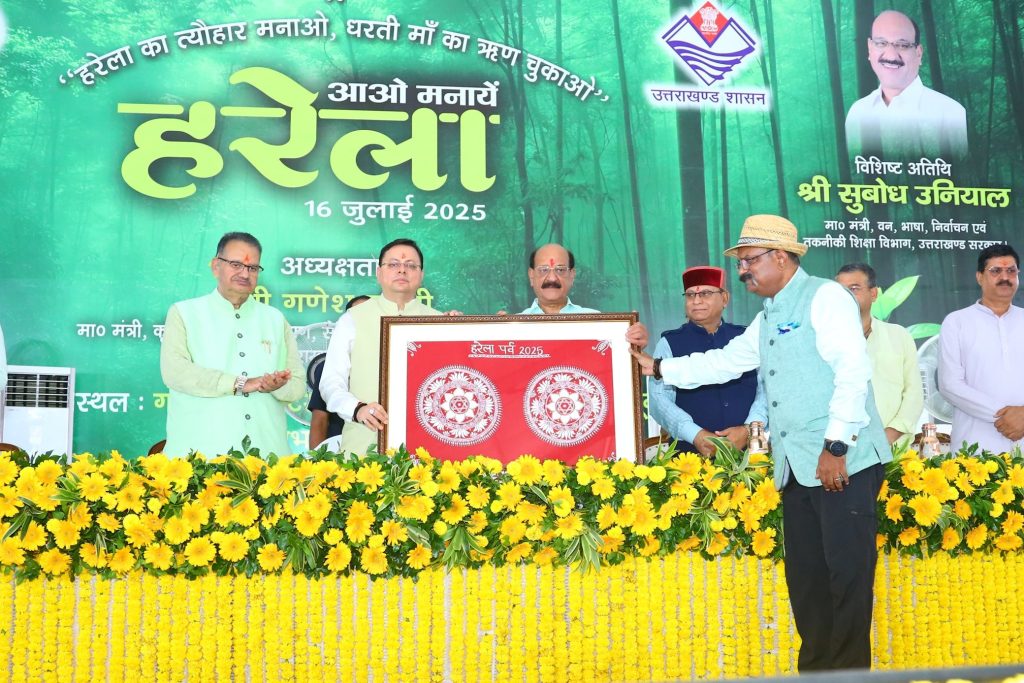 मुख्यमंत्री पुष्कर सिंह धामी ने बुधवार को उत्तराखण्ड के लोकपर्व हरेला के पावन अवसर पर गोरखा मिलिट्री इंटर कॉलेज परिसर, देहरादून में “हरेला का त्योहार मनाओ, धरती मां का ऋण चुकाओ” थीम पर आयोजित राज्यव्यापी पौधारोपण कार्यक्रम में प्रतिभाग किया. इस अवसर पर उन्होंने रुद्राक्ष का पौधा भी रोपा. मुख्यमंत्री ने कहा कि हरेला केवल एक पर्व नहीं, बल्कि उत्तराखण्ड की संस्कृति, प्रकृति और चेतना से जुड़ा एक गहरा भाव है, जो हमें पर्यावरण के प्रति हमारी जिम्मेदारियों की याद दिलाता है. उन्होंने बताया कि हरेला पर्व के दिन लगभग 5 लाख पौधे रोपे जाने का लक्ष्य निर्धारित किया गया है.