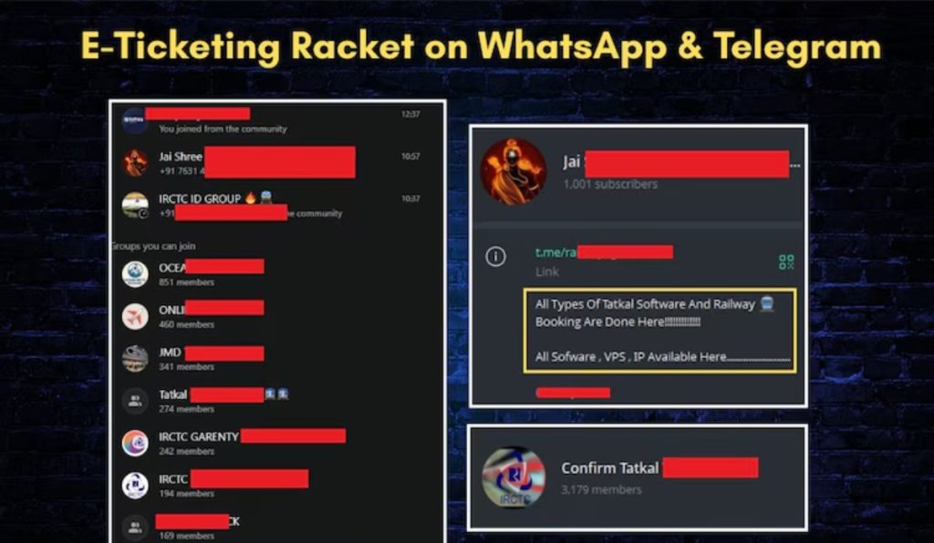 ई-टिकटिंग रैकेट में सिर्फ़ एजेंट ही नहीं, बल्कि टेक्नोलॉजी के जानकार और फेक सर्विस देने वाले लोग भी शामिल हैं, जो IRCTC सिस्टम में कथित खामियों का फायदा उठाने का दावा करते हैं। ये लोग टेलीग्राम और व्हाट्सएप अकाउंट के ज़रिए काम करते हैं। अपनी पहचान छिपाने के लिए एडमिन अंतरराष्ट्रीय फ़ोन नंबरों का इस्तेमाल करते हैं।