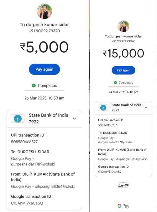 दिलीप चंद्रा नाम के एक शिक्षक की जमीन विवाद से जुड़ा यह पूरा मामला है. बताया जा रहा है कि सक्ती जिले के जैजैपुर तहसील के तहसीलदार नंदकिशोर सिन्हा ने शिक्षक के पक्ष में आदेश पारित करने के लिए रिश्वत की मांग की थी. वीडियो को देखकर यह लग रहा है कि दिलीप चंद्रा ने ही इसे अपने मोबाइल पर कैद किया है. वीडियो में तहसीलदार का घर दिख रहा है, जहां शिक्षक रिश्वत की रकम देने के लिए गया था. तहसीलदार का कर्मचारी (जिसे ड्राइवर बताया गया है) ने अपने फोन पे खाता पर यह रक़म ली है. कर्मचारी का नाम दुर्गेश सिदार है, जिसके फोन पर रिश्वत की रकम भेजी गई है. लल्लूराम.काम के पास दुर्गेश सिदार के फोन पे पर भेजी गई रिश्वत की रकम का स्क्रीन शाट मौजूद है.