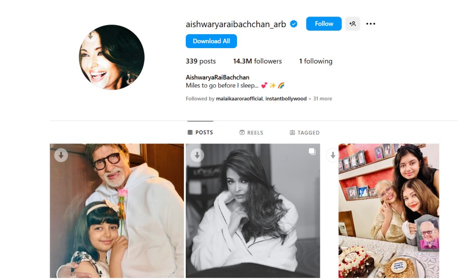 एक्ट्रेस ऐश्वर्या राय (Aishwarya Rai) और अभिषेक बच्चन (Abhishek Bachchan) इन दिनों तलाक की अफवाहों को लेकर खबरों में बने हुए हैं. दोनों को काफी समय से एक साथ स्पॉट भी नहीं किया गया है. वहीं, अभिषेक बच्चन (Abhishek Bachchan) के अफेयर तक की अफवाहें सामने आ रही हैं. दुनियाभर में एक्ट्रेस के लाखों फैंस मौजूद हैं. इंस्टाग्राम पर उन्हें करीबन 14.3 मिलियन लोग फॉलो करते हैं, लेकिन ऐश्वर्या राय (Aishwarya Rai) इंस्टाग्राम पर सिर्फ एक शख्स को फॉलो करती हैं, आइए बताते हैं कि वो शख्स कौन है?
