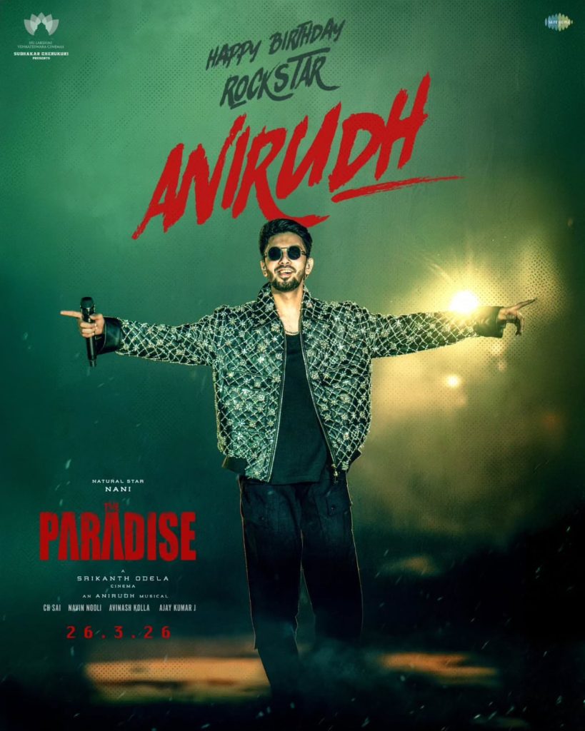 नेचुरल स्टार नानी (Nani) की फिल्म द पैराडाइज (The Paradise) को लेकर बज और एक्साइटमेंट बना हुआ है. इस फिल्म को टैलेंटेड डायरेक्टर श्रीकांत ओडेला डायरेक्ट कर रहे हैं. इसी बीच टीम ने सेंसेशनल म्यूजिक कंपोजर अनिरुद्ध रविचंदर (Anirudh Ravichander) को जन्मदिन की बधाई दिया है.