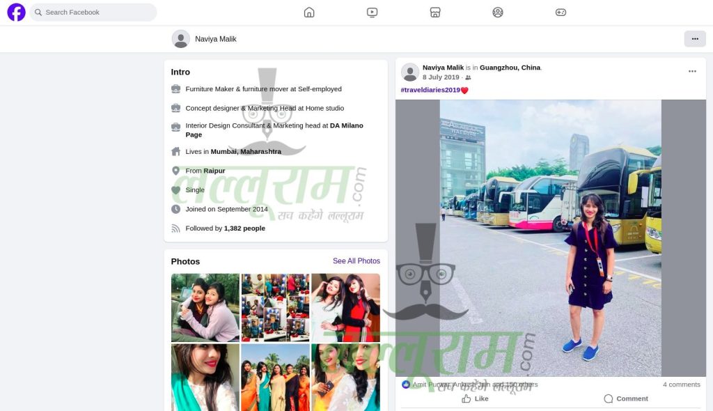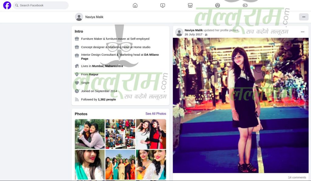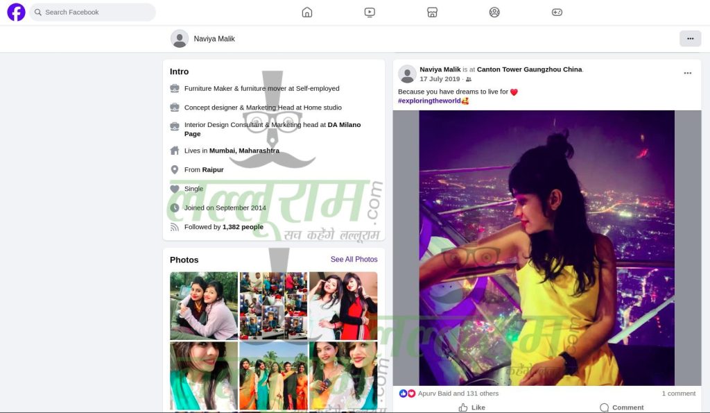 लेकिन लल्लूराम डॉट कॉम की टीम ने Naviya Malik का पूरा सोशल मीडिया अकाउंट खंगाला है और उसके तमाम विदेश यात्रा और सोशल मीडिया में पोस्ट की गई तस्वीरें साझा कर रहे है. हालांकि लल्लूराम डॉट कॉम को Naviya Malik की जो फेसबुक आईडी मिली है उसमें आखिरी पोस्ट 14 जून 2022 का है, जिसमें ड्रग्स क्वीन ने टर्की की फोटो पोस्ट की है. उसको जानने वाले लोग बताते है कि नाविया मलिक ने इंटिरियर डिजाइनर की पढ़ाई रायपुर के ही एक निजी कॉलेज से की है और वे जब भी अपने पुराने दोस्तों से मिलती थी वो उनसे गुजराती में बात करना पसंद करती थी.