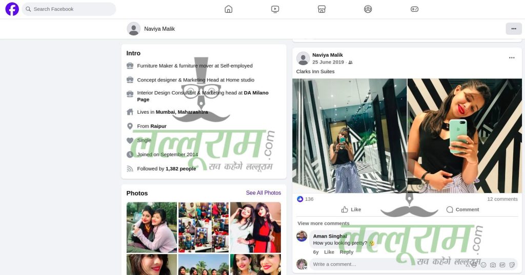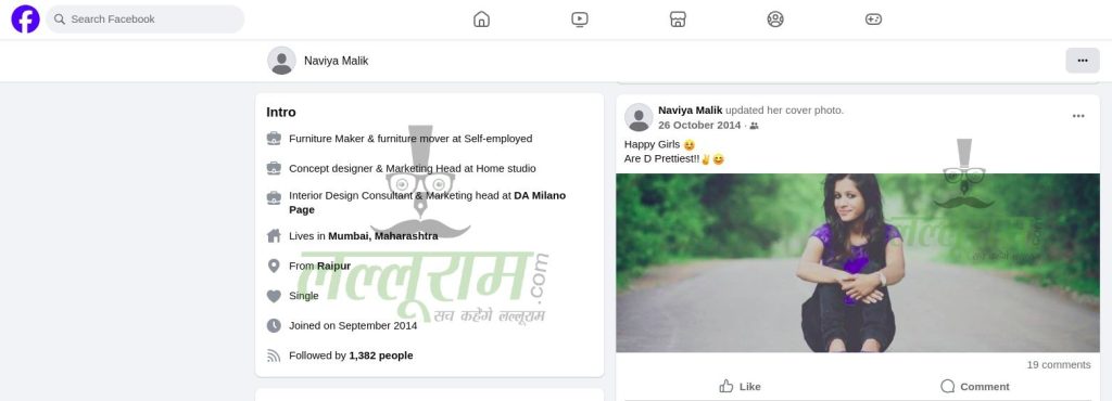 Naviya Malik ने अपना Facebook Account (Naviya Malik Facebook Account) लॉक रखा है. यही कारण है कि आप यदि उसके अकाउंट तक भी पहुंच गए तो उसके द्वारा पोस्ट की गई फोटोज नहीं देख पाएंगे.