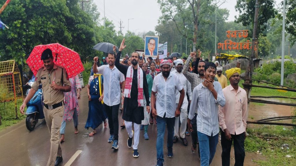पुरुषोत्तम पात्र, गरियाबंद। गरियाबंद में आज आदिवासी समाज ने वन अधिकार नियमों में बदलाव का कड़ा विरोध किया। आदिवासी विकास परिषद, ग्राम सभा फेडरेशन, एकता परिषद के बैनर तले जिला पंचायत सदस्य सदस्य लोकेश्वरी नेताम और संजय नेताम के नेतृत्व में सैकड़ों की संख्या में आदिवासियों ने गरियाबंद में रैली निकाली। मजरकट्टा स्थित परिषद भवन से कलेक्टोरेट तक 5 किमी आदिवासियों ने बरसते पानी में पैदल यात्रा किया। कलेक्टोरेट पहुंच मुख्यमंत्री के नाम ज्ञापन सौंप वन अधिकार से जुड़े नियमों में हुए परिवर्तन को हटाते हुए यथावत रखने की मांग किया है।