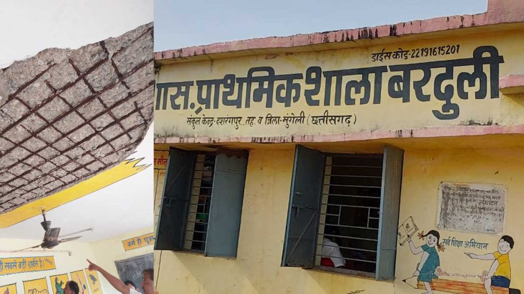 जिले में स्कूल शिक्षा विभाग के स्कूलों के मरम्मत व जतन के दावों की खुली पोल खुल गई, जब बरदुली स्थित प्राथमिक शाला में छत का प्लास्टर गिर गया.
