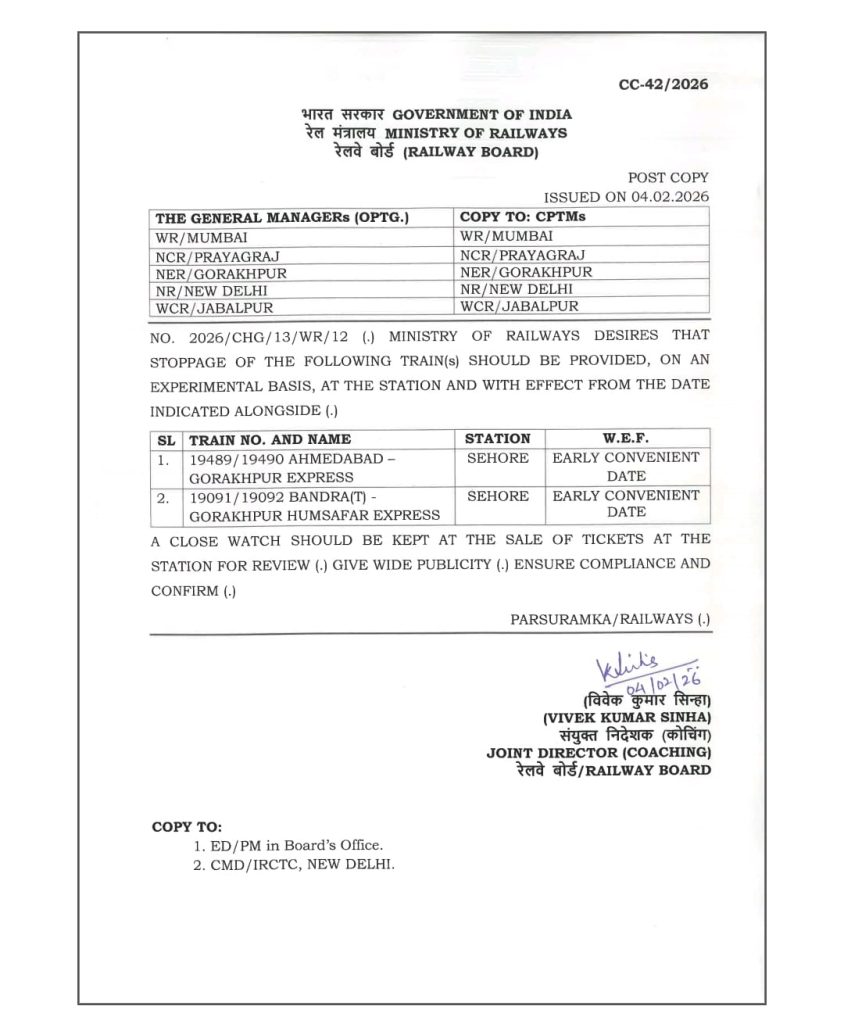 सीहोरवासी बनारस, प्रयागराज, अहमदाबाद, मुंबई समेत धार्मिक और व्यापारिक महत्व के इन बड़े शहरों के लिए इन ट्रेनों की मांग काफी लंबे समय से कर रहे थे। सांसद आलोक शर्मा के संज्ञान में जब यह बात लाई गई तो उन्होंने रेल मंत्री से मुलाकात कर आग्रह किया था। जिसे रेल मंत्री जी ने स्वीकृति दे दी है।