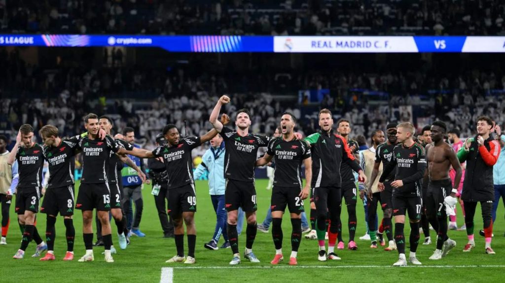 लंदन में क्वार्टर फाइनल के पहले चरण में 3-0 की बड़ी बढ़त लेने के बाद आर्सेनल ने रियल मैड्रिड को उसके घरेलू मैदान सैंटियागो बर्नब्यू में 2-1 से हराकर कुल 5-1 के स्कोर से क्वार्टर फाइनल जीत लिया। बुकायो साका ने 65वें मिनट में गोल कर आर्सेनल को बढ़त दिलाई, जिसके बाद विनीसियस जूनियर ने रियल के लिए बराबरी की। इंजरी टाइम में गेब्रियाल मार्टिनेली ने दूसरा गोल दागकर आर्सेनल की जीत सुनिश्चित की। रियल मैड्रिड के स्टार स्ट्राइकर किलियन एमबाप्पे चोट के कारण 75वें मिनट में मैदान से बाहर हो गए।