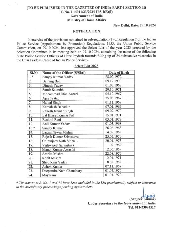 लखनऊ. यूपी के 24 (प्रांतीय पुलिस सेवा) PPS अफसरों को IPS पद पर प्रमोट किया गया है. जिसके बाद यूपी पुलिस कैडर को 24 नए IPS अफसर मिल गए हैं. इस संबंध में केंद्रीय गृह मंत्रालय ने अधिसूचना जारी कर दी है.
