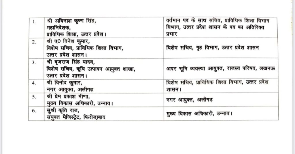 इसके अलावा विनोद कुमार ( नगर आयुक्त अलीगढ़) को विशेष सचिव, प्राविधिक शिक्षा विभाग, उत्तर प्रदेश शासन नियुक्त किया गया है। प्रेम प्रकाश मीणा ( मुख्य विकास अधिकारी उन्नाव) को नगर आयुक्त, अलीगढ़ और कृति राज ( संयुक्त मजिस्ट्रेट फिरोजबाद ) को मुख्य विकास अधिकारी उन्नाव बनाया गया है।