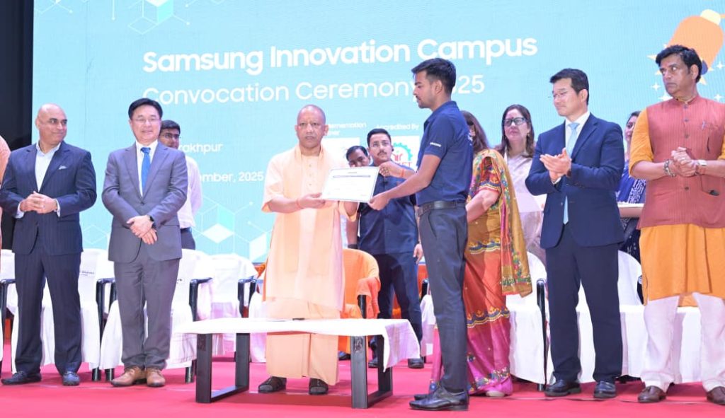 गोरखपुर. सीएम योगी शनिवार को योगिराज बाबा गंभीरनाथ प्रेक्षागृह में सैमसंग इनोवेशन कैंपस द्वारा आयोजित प्रमाणपत्र वितरण समारोह को संबोधित किया. इस अवसर पर मुख्यमंत्री योगी आदित्यनाथ की उपस्थिति में दीनदयाल उपाध्याय गोरखपुर विश्वविद्यालय और अन्य प्रौद्योगिकी संस्थानों के करीब 1300 छात्र-छात्राओं को प्रमाण पत्र वितरित किए गए. मुख्यमंत्री ने अपने हाथों से आठ विद्यार्थियों को प्रमाणपत्र प्रदान किए. मुख्यमंत्री योगी आदित्यनाथ ने कहा कि कभी पहचान के संकट के दौर से गुजरने वाला भारत आज दुनिया की बड़ी ताकत के रूप में एहसास करा रहा है. यह बदलाव लीडरशिप (नेतृत्व) की कार्यपद्धति से आया है. समर्थ और प्रभावी नेतृत्व वही होता है जो देश के प्रति दुनिया की धारणा बदलने का सामर्थ्य रखता हो. विगत 11 वर्षों से देश में ऐसी ही लीडरशिप देखने को मिल रही है.