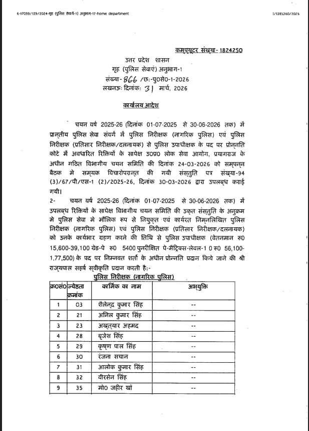 बता दें कि प्रमोशन पाने वालों में अनिल कुमार पांडेय, विश्व ज्योति राय, जसपाल सिंह, विश्वजीत सिंह, जावेद इकबाल खां, दुष्यंत सिंह, विजय शंकर यादव, कृष्ण कुमार मिश्रा, सुधाकर उपाध्याय, कुमार धीरेंद्र नारायण, सुभाष चंद्र समेत 123 लोग शामिल हैं, जिनको डिप्टी एसपी के रूप में प्रमोट किया गया है.