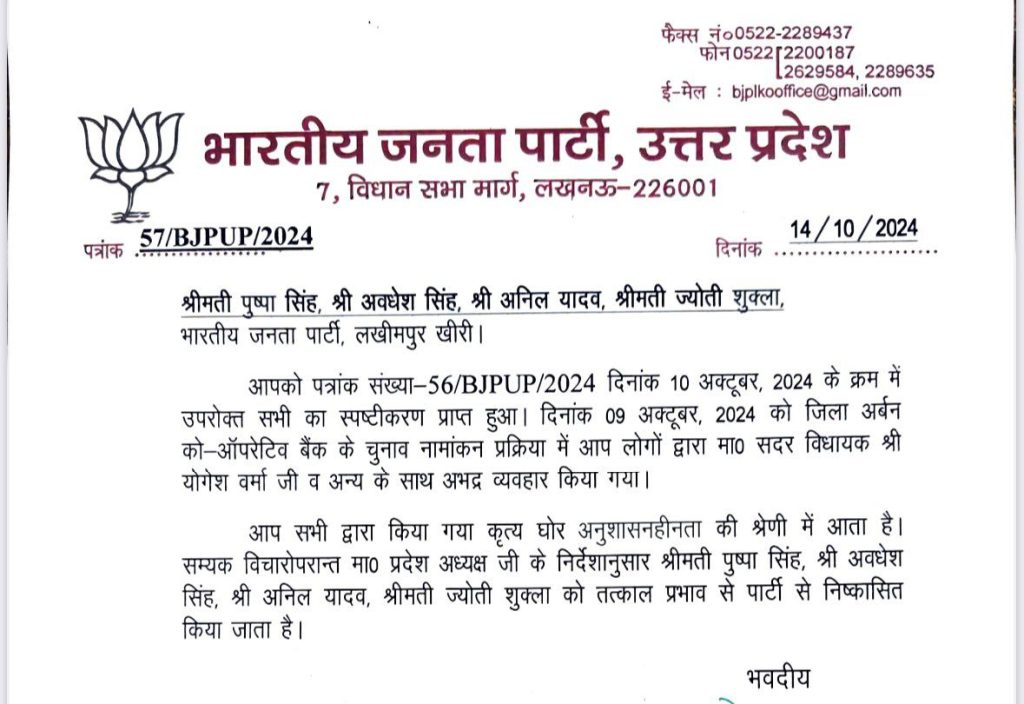 अवधेश सिंह के साथ ये भी पार्टी से निष्कासित