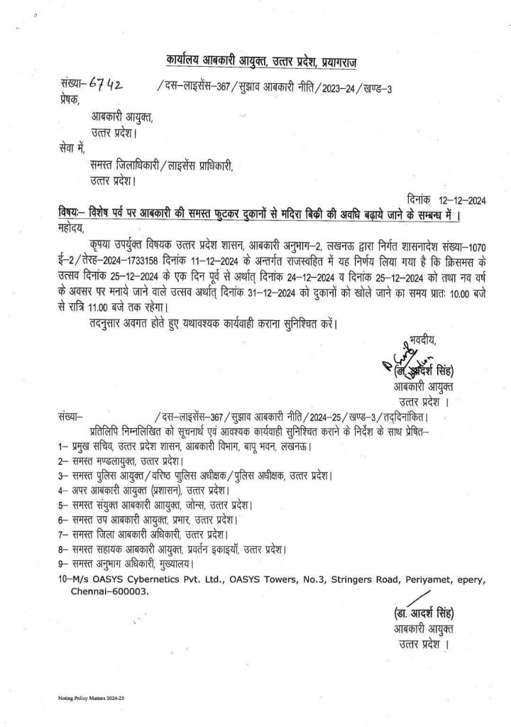 लखनऊ. शराब प्रेमियों के लिए यूपी सरकार ने बड़ा फैसला लिया है. आगामी त्योहार को देखते हुए सरकार ने शराब दुकानों के बंद होने के समय को लेकर बड़ी रियायत दी है. जिसका आदेश आबकारी आयुक्त ने जारी किया है. ऐसे में सभी जिला अधिकारियों को आदेश दिया है कि शराब दुकाने खुलने का समय में बढ़ोत्तरी की गई है. हालांकि, ये आदेश केवल तीन दिनों के लिए ही लागू होगा.