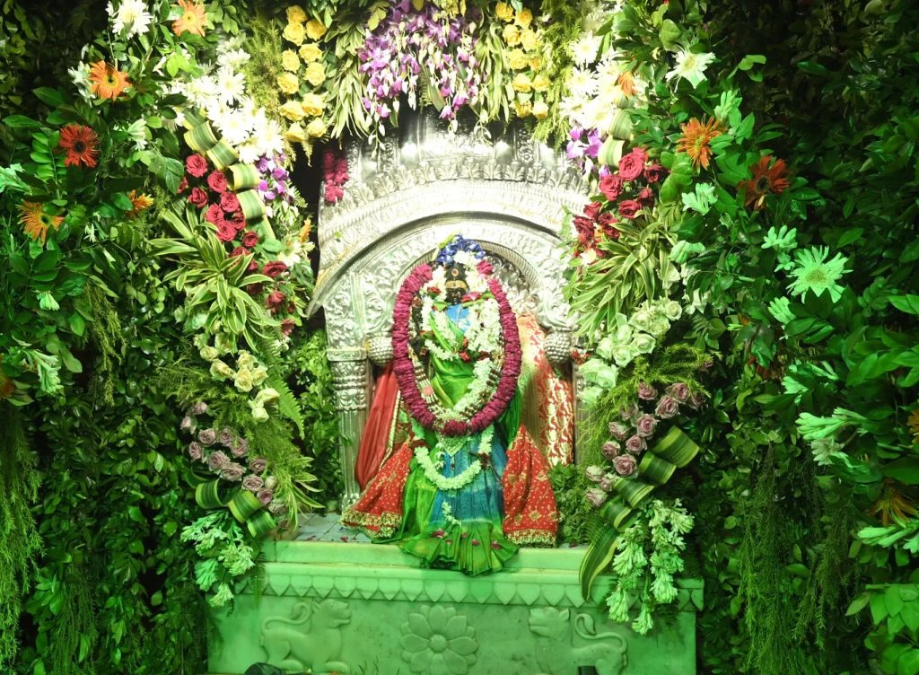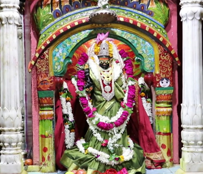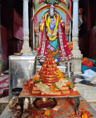 गर्भगृह में संगमरमर का एक और छोटा सा मंदिर है, जिसमें देवी का अर्चाविग्रह प्रतिष्ठित है. उनके ऊपर उठे हुए दाहिने हाथ में कमल है, जबकि दूसरा हाथ अभय मुद्रा में है.