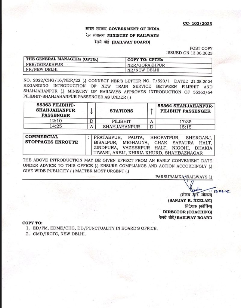 Indian Railway News : भाजपा सरकार ने उत्तर प्रदेश के लोगों को एक और सौगात दी है। भारतीय रेलवे ने उत्तर प्रदेश के लिए नई ट्रेन का ऐलान किया है। यह ट्रेन शाहजहांपुर और पीलीभीत जिले के बीच संचालित होगी। यह एक पैसेंजर गाड़ी होगी, जो 16 स्टेशनों पर रुकेगी। इस संबंध में पीलीभीत सांसद और केंद्रीय मंत्री जितिन प्रसाद ने सूचना दी है।