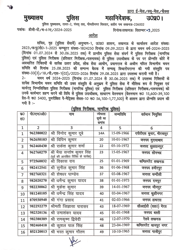 UP Police Pramotion त्योहार से पहले योगी सरकार ने पुलिसकर्मियों को बड़ा तोहफा दिया है। भाजपा सरकार ने 70 इंस्पेक्टर का प्रमोशन करके उन्हें डीएसपी बनाया है। उत्तर प्रदेश पुलिस महानिदेशक मुख्यालय ने इस संबंध में आदेश भी जारी कर दिया है।