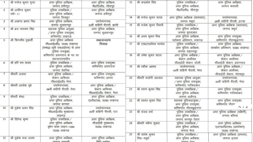 • अभिषेक तिवारी → ASP (ग्रामीण), मैनपुरी