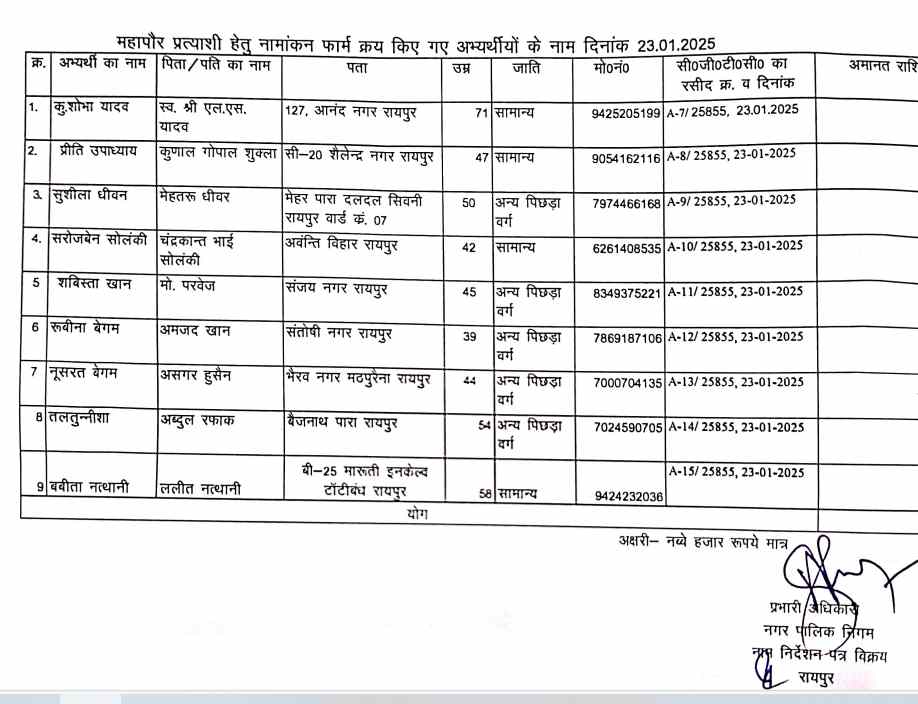 रायपुर में महापौर के लिए इन्होंने खरीदे नामांकन फाॅर्म