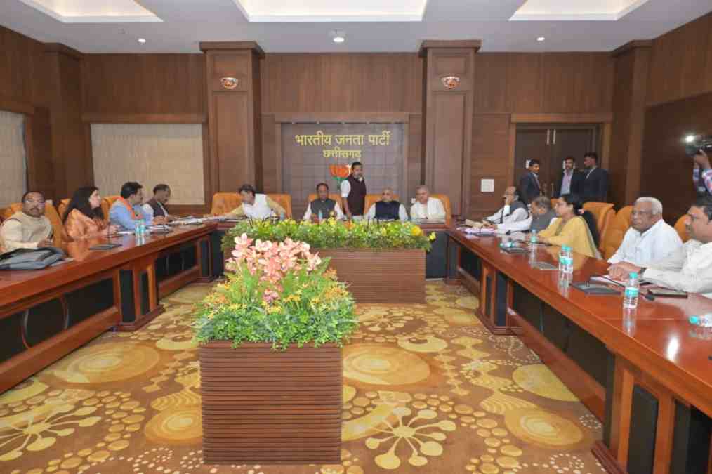 शुक्रवार को हुई बैठक में मुख्यमंत्री विष्णु देव साय, प्रदेश प्रभारी नितिन नवीन, राष्ट्रीय सह संगठन महामंत्री शिव प्रकाश, क्षेत्रीय संगठन महामंत्री अजय जम्वाल, प्रदेश अध्यक्ष किरण सिंह देव, प्रदेश संगठन महामंत्री पवन साय, उपमुख्यमंत्री द्वय अरुण साव, विजय शर्मा, राष्ट्रीय उपाध्यक्ष डॉ. (सुश्री) सरोज पांडेय, मंत्री रामविचार नेताम, ओपी चौधरी, केदार कश्यप, सांसद संतोष पांडे, विधायक लता उसेंडी, पुन्नूलाल मोहले, धरमलाल कौशिक, प्रदेश महामंत्री संजय श्रीवास्तव, जगदीश (रामू) रोहरा, भरत लाल वर्मा, राम जी भारती मौजूद रहे.