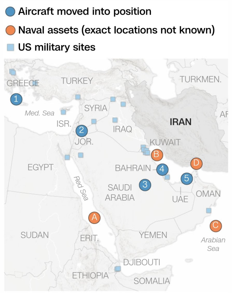 CBS न्यूज के मुताबिक, ने अज्ञात सोर्स के हवाले से बताया कि ट्रंप को हमले की ब्रीफिंग दी गई है। अमेरिकी मिलिट्री ने पिछले कुछ दिनों में मिडिल ईस्ट में एयर और नेवल एसेट्स की भारी बिल्डअप की है। अमेरिका का सबसे एडवांस्ड एयरक्राफ्ट कैरियर USS गेराल्ड आर फोर्ड इस वीकेंड तक इलाके में पहुंच सकता है। साथ ही फाइटर जेट्स, गाइडेड-मिसाइल डिस्ट्रॉयर्स और हजारों अतिरिक्त ट्रूप्स तैनात किए गए हैं। हालांकि, सूत्रों के मुताबिक, ट्रंप ने कोई अंतिम फैसला नहीं लिया है, वह हमले की टाइमलाइन इस वीकेंड आगे बढ़ा सकते हैं।