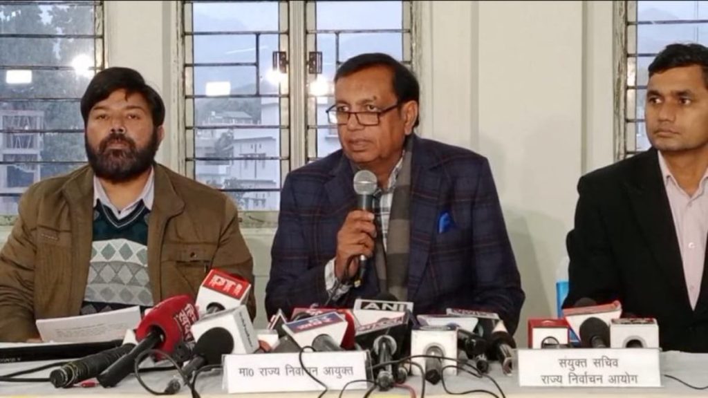 Uttarakhand Local Body Election 2024. राज्य निर्वाचन आयुक्त सुशील कुमार ने सोमवार को राज्य निर्वाचन आयोग मुख्यालय में नागर स्थानीय निकाय सामान्य निर्वाचन 2024 के संबंध में प्रेस वार्ता की. राज्य निर्वाचन आयुक्त ने उत्तराखण्ड राज्य के 11 नगर निगम, 43 नगर पालिका परिषद और 46 नगर पंचायतों के सामान्य निर्वाचन 2024 के लिए निर्धारित कार्यक्रम जारी किया.