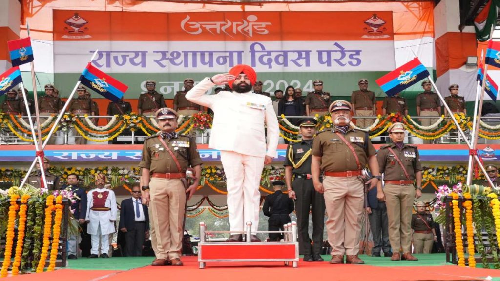 Uk 25th Foundation Day: उत्तराखंड राज्य स्थापना दिवस के अवसर पर आज पुलिस लाइन में आयोजित मुख्य कार्यक्रम में राज्यपाल लेफ्टिनेंट जनरल गुरमीत सिंह (सेनि) और सीएम पुष्कर सिंह धामी शामिल हुए. इस अवसर पर राज्यपाल ने रैतिक परेड का निरीक्षण कर सलामी ली. राज्यपाल ने विशिष्ट सेवाओं के लिए ‘राष्ट्रपति पुलिस पदक’ औप ‘पुलिस पदक’ प्राप्त पुलिस अधिकारियों को सम्मानित भी किया.