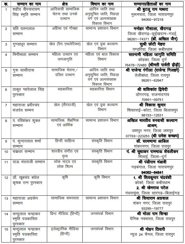 इन 36 विभूतियों को मिला राज्य अलंकरण सम्मान: