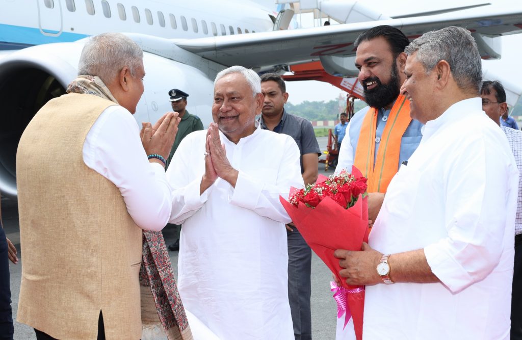 कुंदन कुमार/पटना: भारत के उपराष्ट्रपति जगदीप धनखड़ आज पटना पहुंचे. पटना एयरपोर्ट पर मुख्यमंत्री नीतीश कुमार, बिहार सरकार के मंत्री विजय चौधरी, उपमुख्यमंत्री सम्राट चौधरी ने उनका स्वागत किया है.