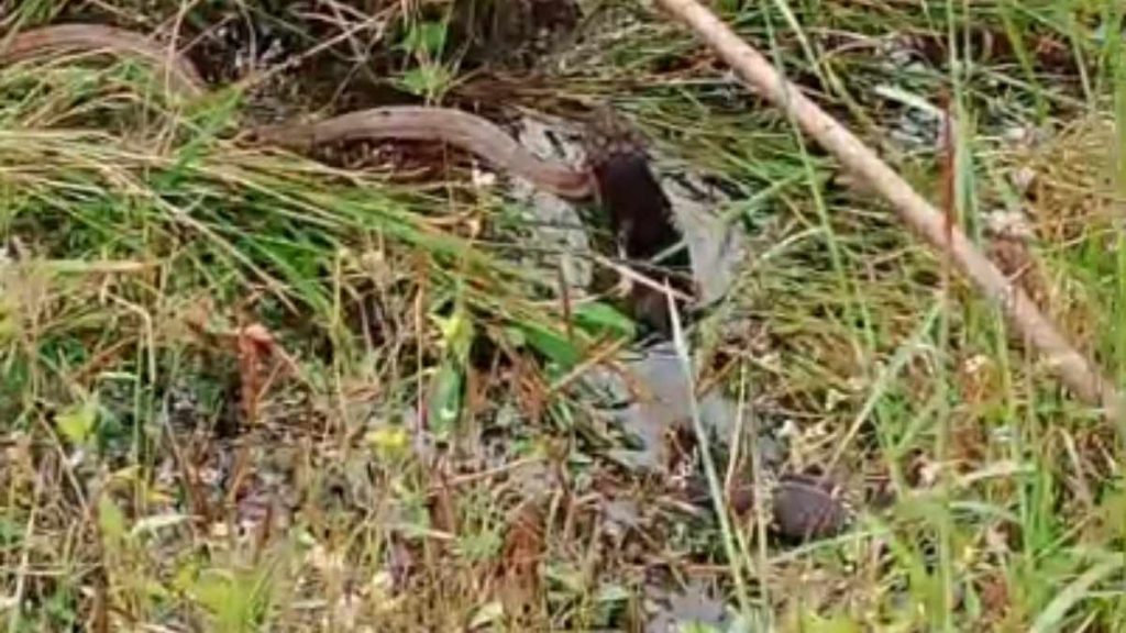 कोरबा। वनमंडल कोरबा के ग्राम कोरकोमा से किंग कोबरा का एक खतरनाक वीडियो सामने आया है. खेत में धान कटाई कर रहे किसानों की नजर अचानक किंग कोबरा पर पड़ी, जो नाग सांप को निगल रहा था. किंग कोबरा ने कुछ ही मिनटों में नाग को अपना शिकार बना लिया. यह नजारा इतना चौंकाने वाला था कि खेत में काम कर रहे सभी किसान दहशत में आ गए. लोगों ने वाकये का वीडियो बनाया, जो अब सोशल मीडिया पर तेजी से वायरल हो रहा है.