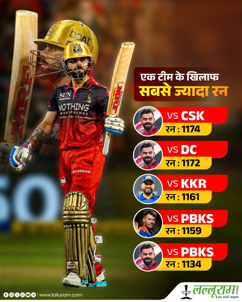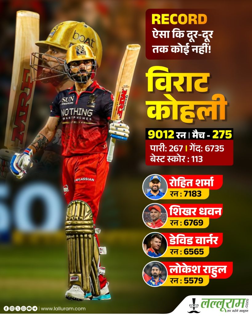 कोहली का यह आंकड़ा उनके निरंतर प्रदर्शन और लंबे समय तक लीग में दबदबा बनाए रखने का प्रमाण है।