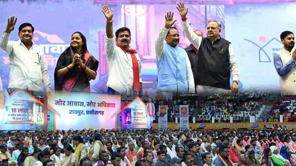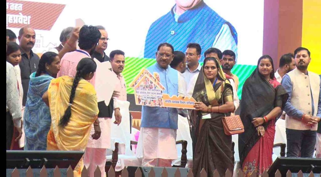 रायपुर के इनडोर स्टेडियम में आयोजित ‘मोर आवास मोर अधिकार’ कार्यक्रम में छत्तीसगढ़ के मुख्यमंत्री विष्णु देव साय के साथ विधानसभा अध्यक्ष डॉक्टर रमन सिंह, उप मुख्यमंत्री विजय शर्मा, राज्य के अन्य मंत्री, विधायक और अधिकारी भी मौजूद रहे..अपने संबोधन में सीएम साय ने कहा था कि, “आज छत्तीसगढ़ के लोगों के लिए दोहरी खुशी का दिन है. क्योंकि आज पीएम का जन्मदिन है और लाखों लोगों के लिए घर का सपना साकार होने जा रहा है. हम पीएम का दिल से आभार व्यक्त करते हैं. हमने समारोह में लाभार्थियों के पैर धोकर उनका स्वागत किया है.. आज बहुत खुश हूँ और आत्मिक संतोष भी है. रोटी, कपड़ा और मकान’ आम आदमी की सबसे बुनियादी जरूरतें हैं. लेकिन आजादी के कई दशकों बाद भी देश के करोड़ों नागरिकों के पास अपना घर नहीं है.