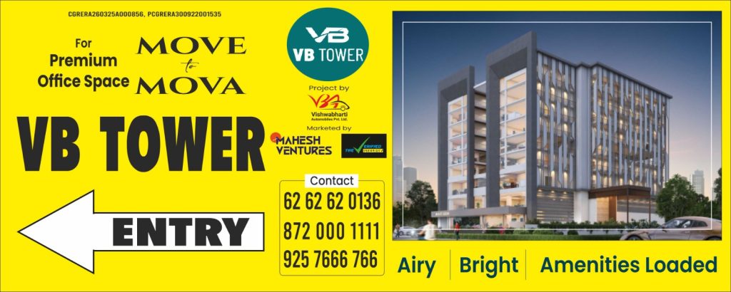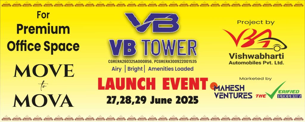 रायपुर। श्री जगन्नाथ यात्रा के दौरान रायपुर में कमर्शियल प्रोजेक्ट ‘VB Tower’ की ग्रैंड लॉन्चिंग हुई. विधानसभा रोड, मोवा स्थित प्रोजेक्ट साइट पर आज से शुरू हुआ लॉन्चिंग इवेंट अगले दो दिन और चलेगा. इस दौरान स्पॉट बुकिंग, लॉन्च ऑफर्स समेत कई खास सुविधाएं उपलब्ध होंगी.