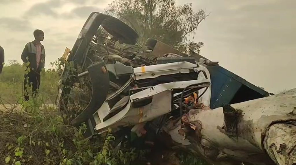 पवन राय, मंडला। मंडला जिले के बम्हनी थाने के मांगा गांव के पास तेज रफ्तार रेत से भरा एक डंपर पेड़ से जा टकराकर पलट गया। टक्कर इतनी भीषण हुई की हादसे में ड्राइवर और कंडक्टर की मौके पर ही मौत हो गई, जबकि दो अन्य लोग घायल हो गए। शुरुआती जांच के अनुसार ड्राइवर नशे की हालत में वाहन चला रहा था। जिसके कारण ये हादसा हुआ। वहीं घटना में घायल हुए घायलों को स्थानीय अस्पताल में भर्ती कराया गया है। जहां उनका इलाज किया जा रहा है।