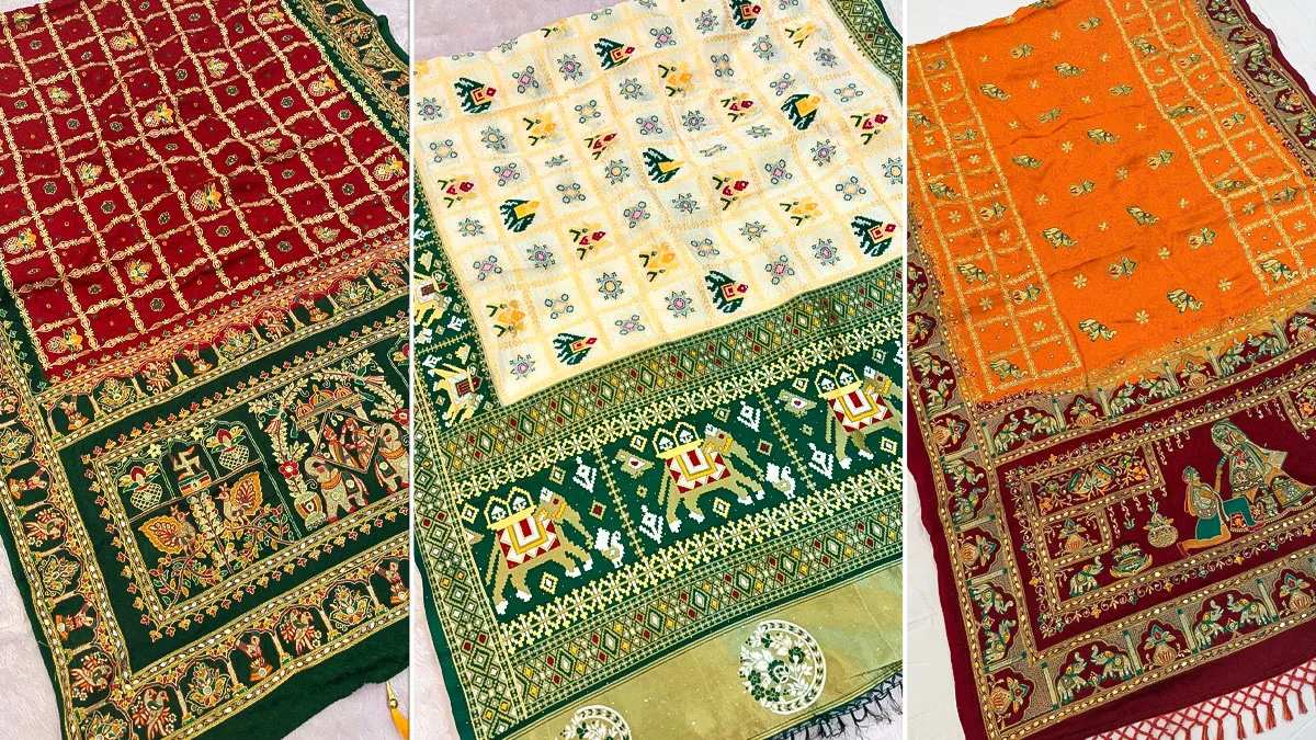 ट्रेडिशनल प्रिंटेड गुजरती घरचोला साड़ी डिजाइन