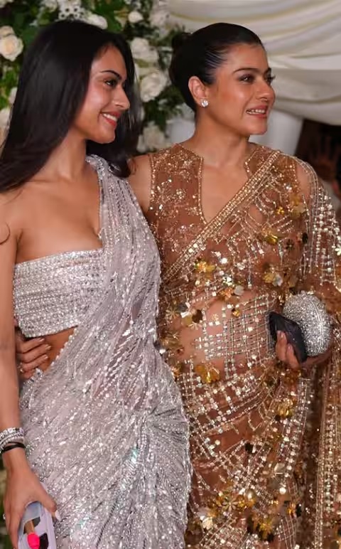 निसा ने मां काजोल के साथ पोज दिए. काजोल को गोल्डन साड़ी में देखा गया.