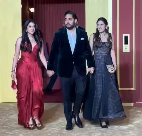 राधिका अंबानी ने रेड ड्रेस में लूटी लाइमलाइट, जेठ-जेठानी संग यूं दिए पोज