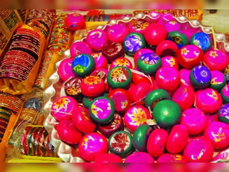 प्राकृतिक रंगों से भरे लाख के छोटे गोल आकार के गेंदों को ‘गुलाल गोटा’ के नाम से जाना जाता है