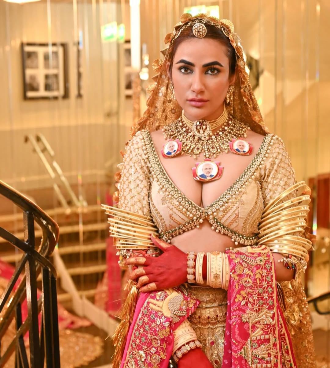 इसमें उन्होंने भारतीय क्राफ्ट का जश्न मनाता एक बोल्ड गोल्ड लहंगा पहना.