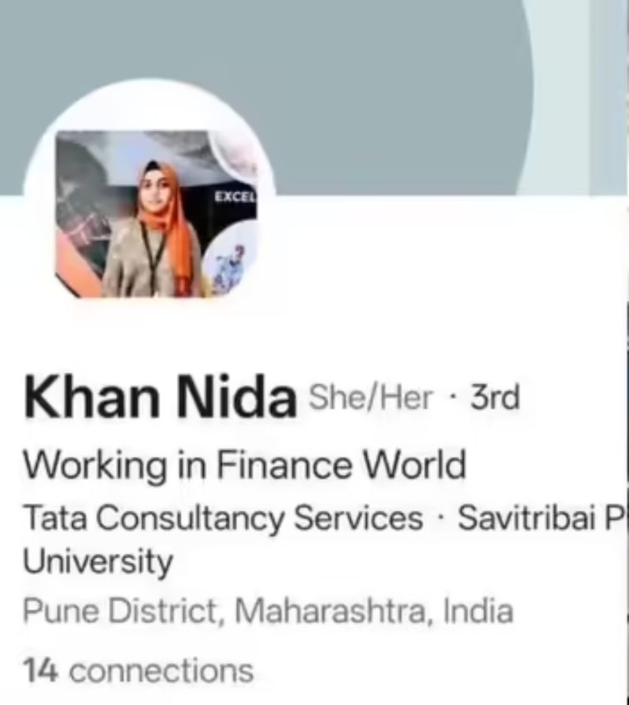 निदा खान सावित्रीबाई फुले पुणे विश्वविद्यालय (एसपीपीयू) की पूर्व छात्रा है। वे नासिक टीसीएस बीपीओ यूनिट में प्रबंधकीय एचआर पद पर तैनात थी और कंपनी की आंतरिक शिकायत निवारण समिति (आईसीसी) की सदस्य भी थी। उसकी जिम्मेदारी में कर्मचारियों की शिकायतों को संभालना, कार्यस्थल सुरक्षा सुनिश्चित करना और पीओएसएच (यौन उत्पीड़न निवारण) अधिनियम के तहत अनिवार्य प्रोटोकॉल का पालन कराना शामिल था। कुछ रिपोर्ट्स के अनुसार, वह पुणे से जुड़ी हुई थी और जनवरी 2026 में कंपनी छोड़ चुकी थीं।