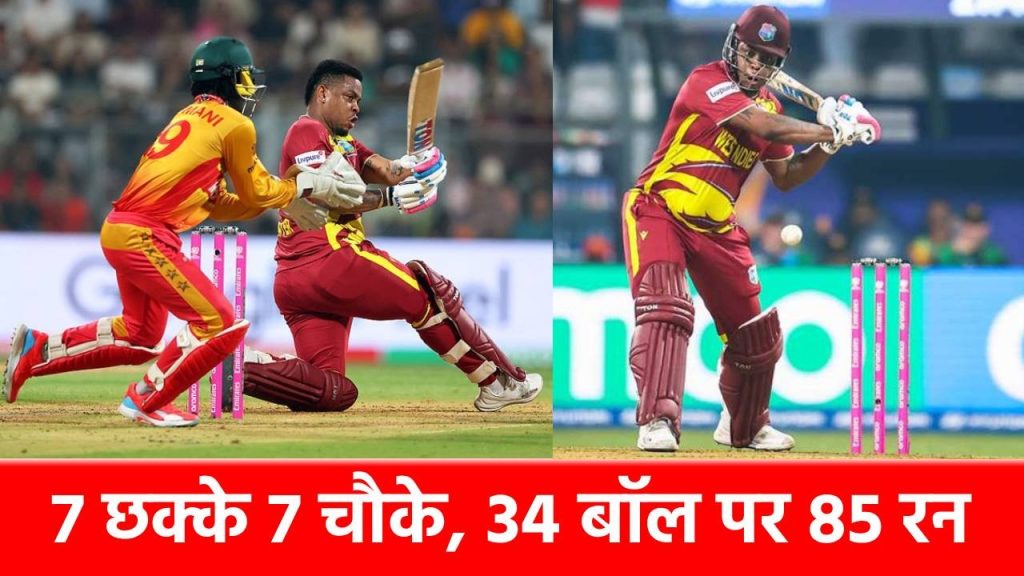 T20 World Cup 2026: टी20 विश्व कप 2026 में सुपर 8 के मुकाबले चल रहे हैं. 23 फरवरी को ग्रुप 1 के तहत वेस्टइंडीज और जिम्बाब्वे के बीच मुंबई के वानखेड़े मैदान पर मुकाबला खेला गया. इस ग्रुप में दोनों टीमों का यह पहला ही मैच है. वेस्टइंडीज ने पहले बैटिंग करते हुए 20 ओवरों में 5 विकेट खोकर 254 रन ठोक डाले. टीम को इतने बड़े स्कोर तक पहुंचाने में शिमरोन हेटमायर ने अहम रोल अदा किया. उन्होंने 35 बॉल पर 85 रनों की तूफानी पारी खेली. इस पारी में उन्होंने 19 बॉल पर अर्धशतक ठोका, जिसके दम पर वो विंडीज के लिए टी20 विश्व कप के इतिहास में सबसे तेज फिफ्टी जमाने वाले बल्लेबाज बन चुके हैं. उन्होंने इसी टूर्नामेंट में स्कॉटलैंड के खिलाफ बनाए गए अपने ही 22 गेंदों के रिकॉर्ड को ध्वस्त कर दिया है.