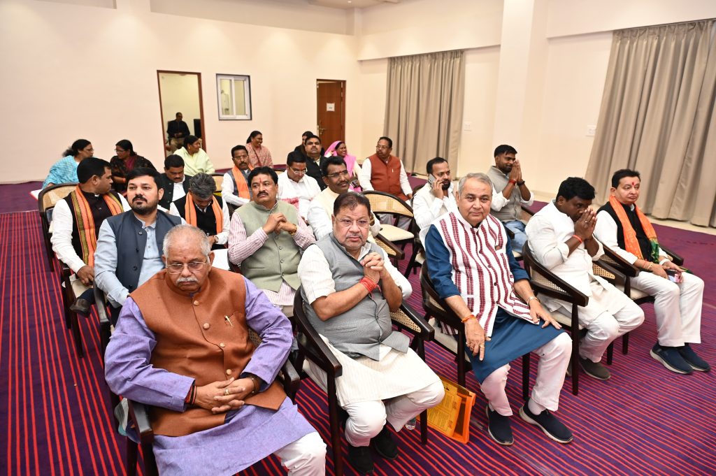 शिवम मिश्रा, रायपुर। नवा रायपुर, अटल नगर स्थित नवीन मुख्यमंत्री निवास में आज भाजपा विधायक दल की अहम बैठक आयोजित की गई. बैठक में आगामी सत्र के दौरान विपक्ष के सवालों का प्रभावी ढंग से जवाब देने की रणनीति बनाई गई.