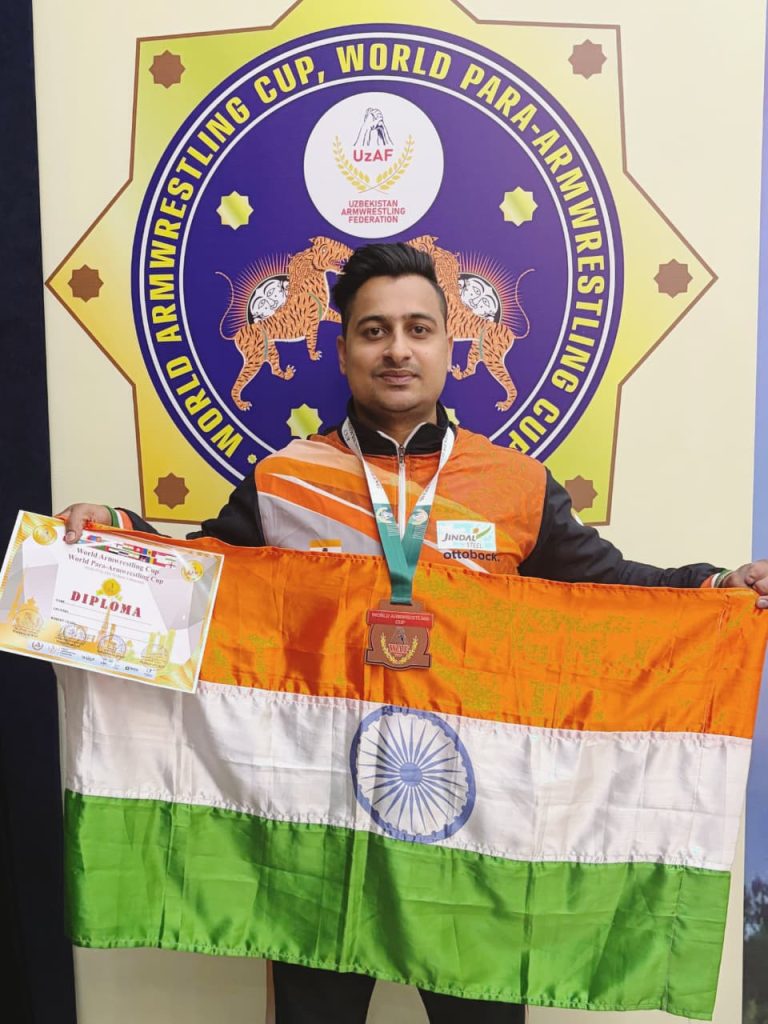 Sports Desk: भारतीय पैरा-आर्म रेसलिंग के सुपरस्टार और एशिया के नंबर-वन खिलाड़ी श्रीमंत झा ने एक बार फिर अंतरराष्ट्रीय मंच पर तिरंगा फहराया है. छत्तीसगढ़ के बेटे श्रीमंत झा ने उज्बेकिस्तान के ताशकंद में आयोजित ‘वर्ल्ड पैरा-आर्म रेसलिंग कप 2026’ में अपनी ताकत और तकनीक का लोहा मनवाते हुए ब्रॉन्ज मेडल (कांस्य पदक) अपने नाम किया है.