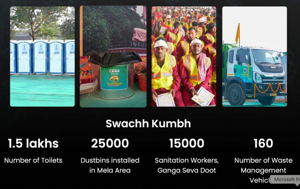 बता दें कि महाकुंभ मेला क्षेत्र में सरकार ने वृहद रूप से सफाई की व्यवस्था कर रखी हैं. जिसमें 1 लाख 50 हजार शौचालय बनाए गए हैं. मेला परिसर में 25 हजार डस्टबिन लगाए गए हैं. 15000 सफाईकर्मी और गंगा सेवा दूतों की तैनाती की गई है. 160 वेस्ट मैनेजमेंट गाड़ियां भी लगाई गई हैं.