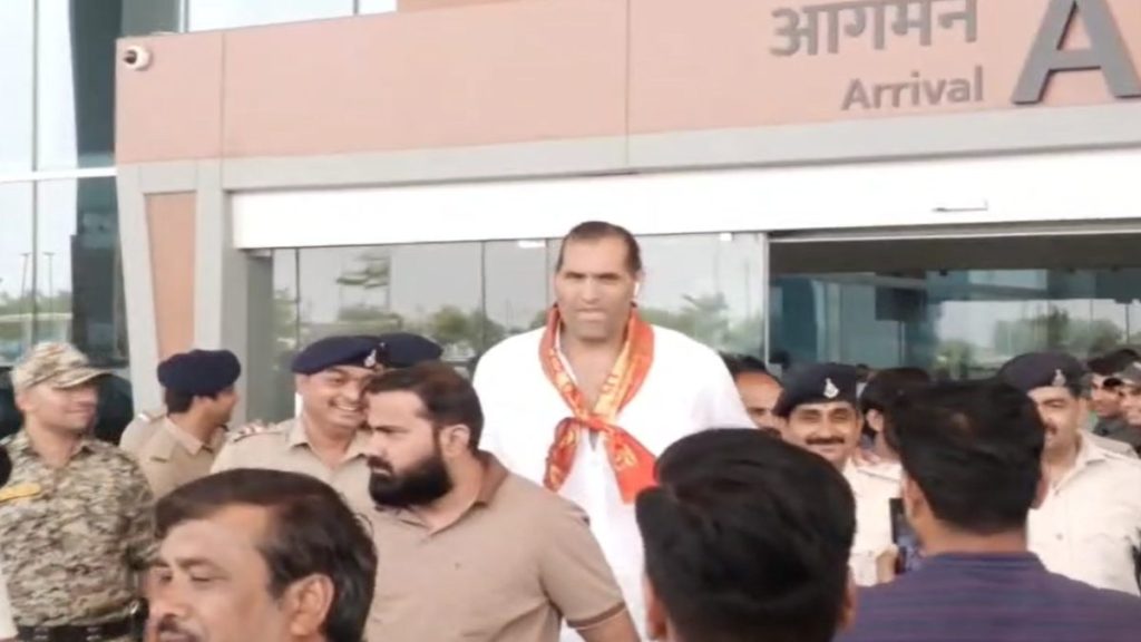 कर्ण मिश्रा, ग्वालियर। WWE रेसलिंग में भारत का नाम रोशन करने वाले फेमस द ग्रेट खली उर्फ दलीप सिंह राणा ग्वालियर पहुंचे। एयरपोर्ट पर उनकी एक झलक पाने उनके फैंस नजर आये। द ग्रेट खली ग्वालियर में आज MPL 2025 का शुभारंभ करेंगे।